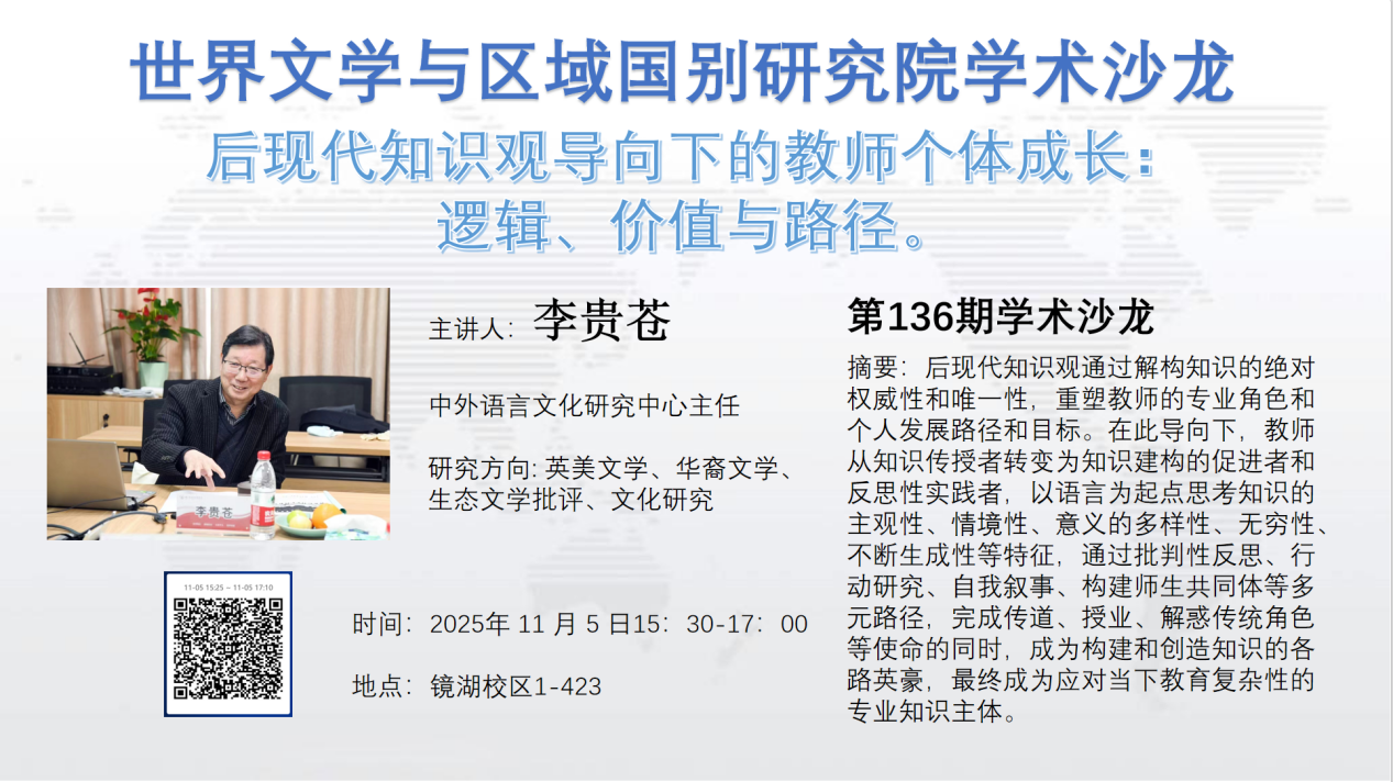 李贵苍教授讲座:“后现代知识观导向下的教师个体成长:逻辑、价值与路径